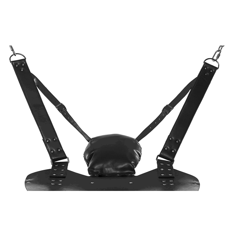 This exquisite bondage sling allows you to access your partner while they are suspended in the air, spread open and waiting for you. The leather material is heavy, while retaining a price point that is accessible for more bondage enthusiasts! The sling allows them to lie back and place their feet in the included stirrups. The padded pillow will cradle their head, with adjustable straps at the head that allows you to raise or lower their upper bodies. The stirrups are detachable with strong metal carabineers, and the advanced material reduces some of the weight for easier transport.